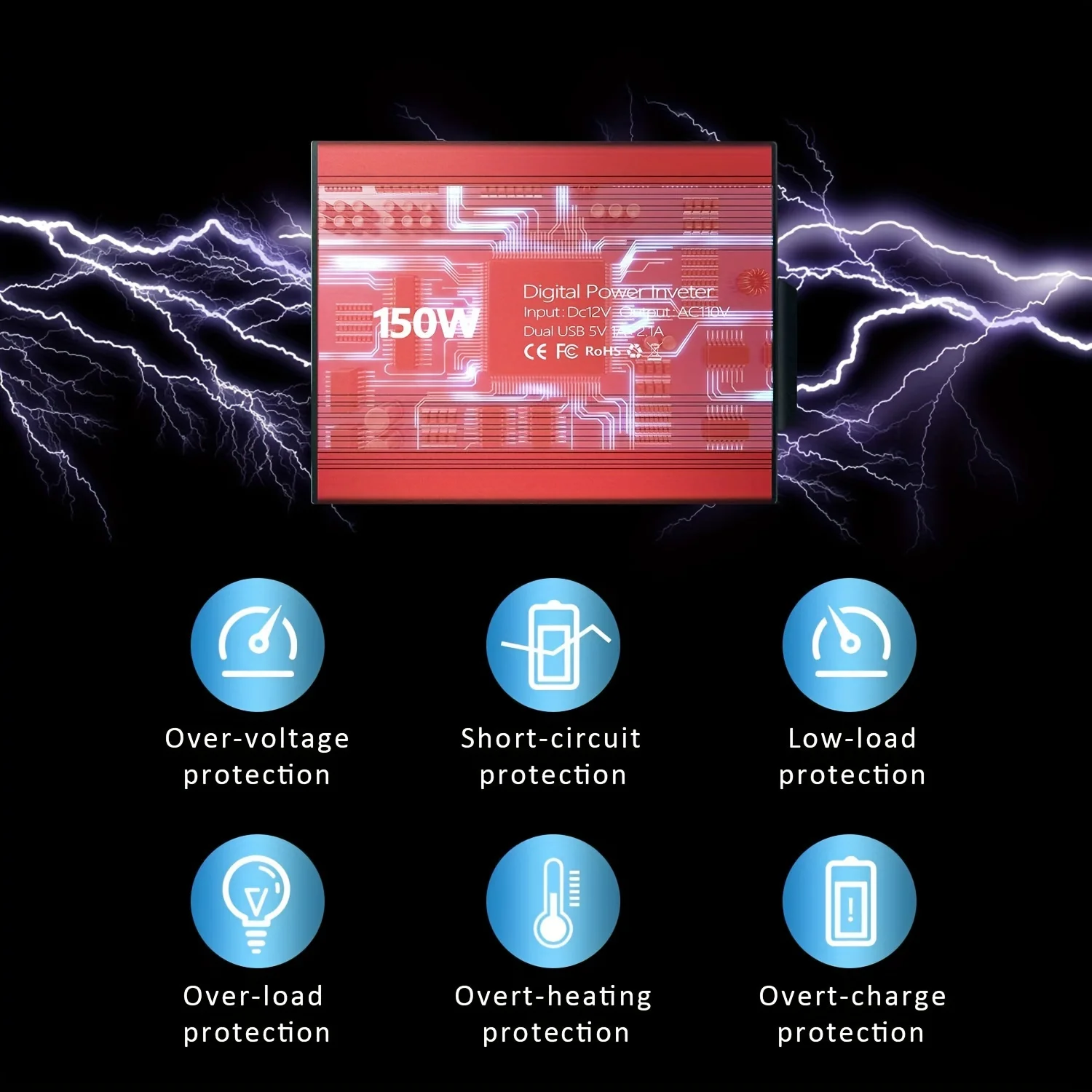 - 150W Power Output: Converts 12V DC to stable 110V/220V AC