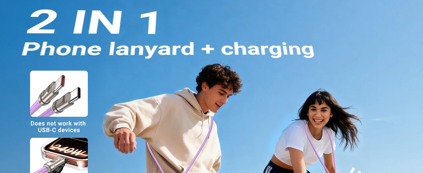 The AUFU 240W USB C to C PD3.1 fast charging cable solves slow charging and cable clutter by delivering ultra-high power charging and data sync through one durable cable, while doubling as a convenient lanyard. It’s perfect for you if you use power-hungry devices like MacBooks, tablets, iPads, or modern smartphones and want a strong, travel-friendly cable that keeps up with your daily use. You’re getting a braided Type-C to Type-C cable supporting up to 240W (5A), retail-packed and built for long-term reliability.