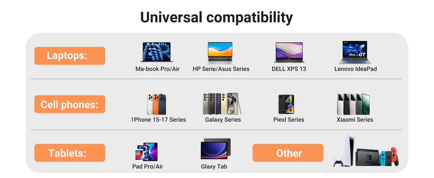 - Compatible with laptops, tablets, and smartphones