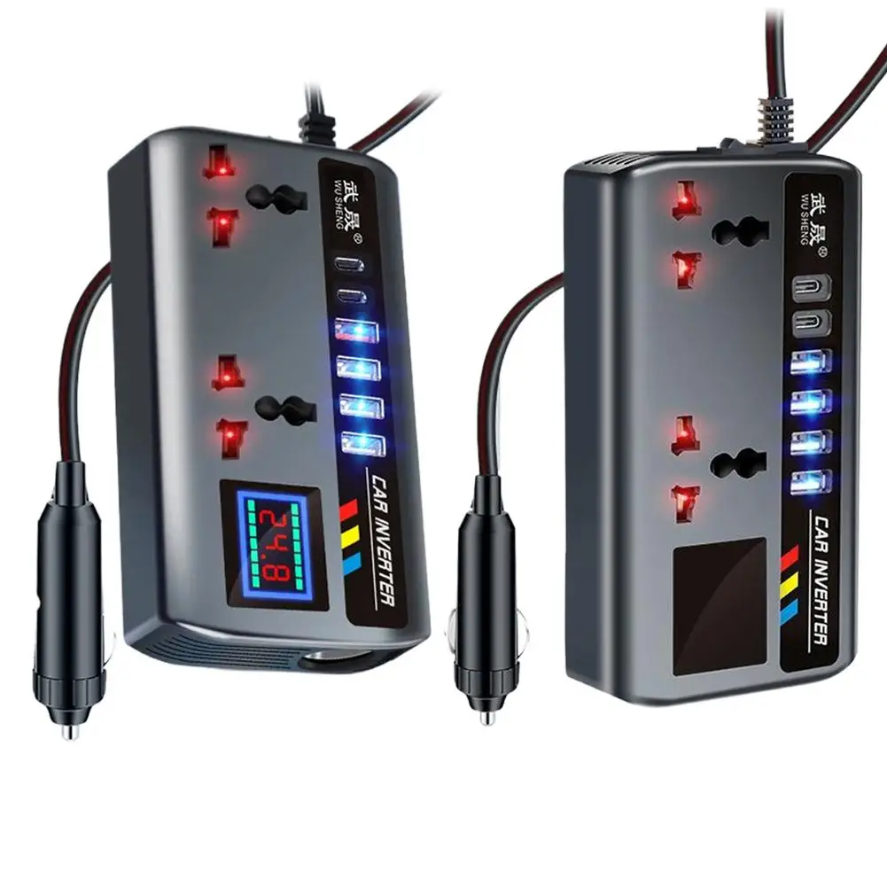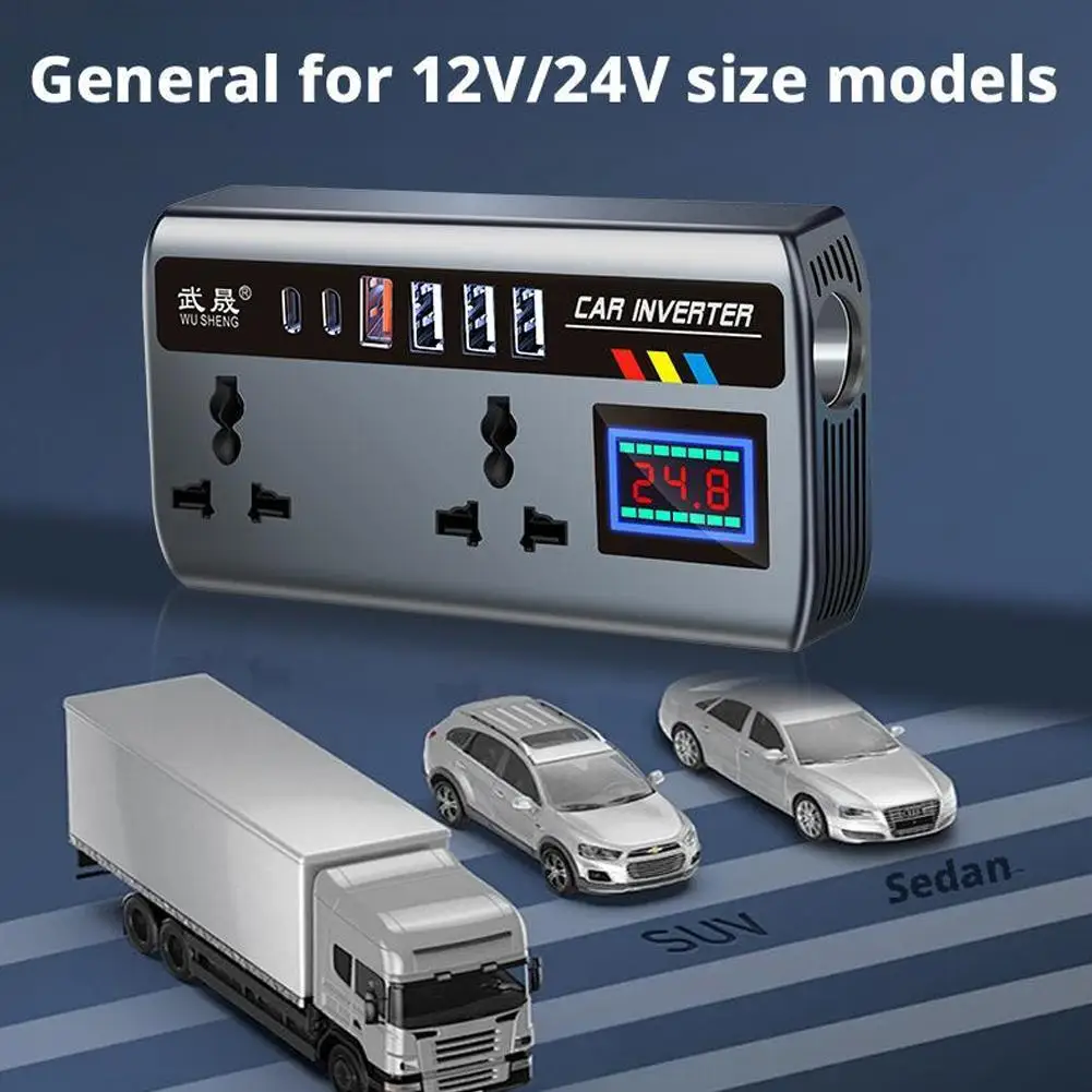 Portable Car Inverter Converter Fast Charging Ports Automotive Charger 12V/24V To 220V Inverter 3 USB Ports Vehicle Accessories