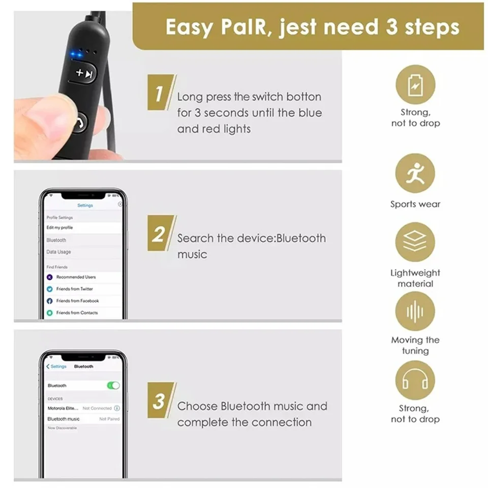 The STTKGZD wireless neckband earphones solve unstable earbuds and short battery life by providing secure magnetic earbuds, clear stereo sound, and long-lasting performance. They’re perfect for you if you want comfortable, reliable earphones for workouts, calls, commuting, or daily music use. You’re getting a lightweight Bluetooth neckband headset with built-in microphone, easy controls, and flexible wired and wireless connectivity.Key Features