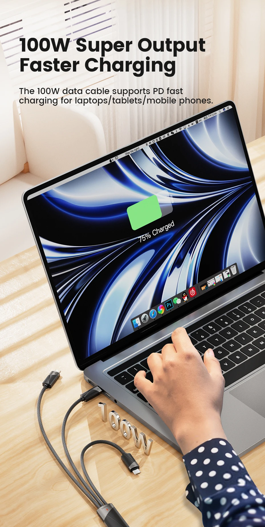 - Supports 100W fast charging and up to 5A current