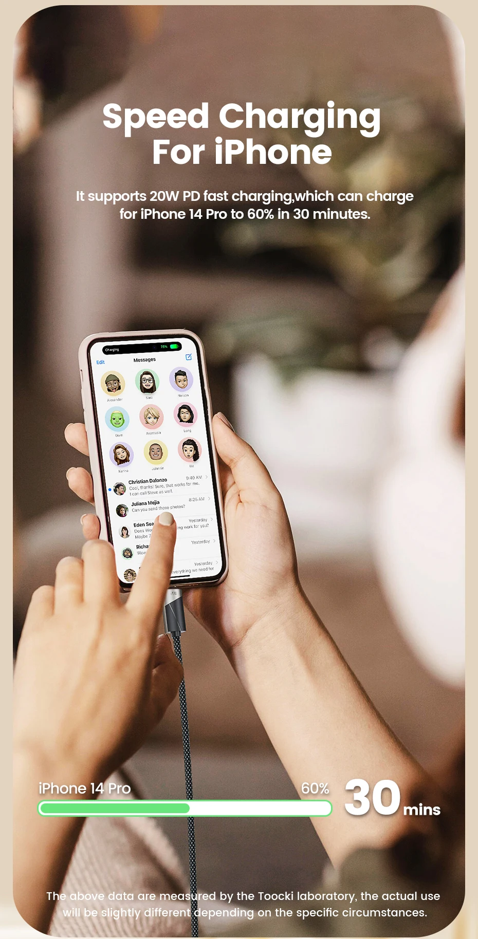 Toocki 3-in-1 USB C Cable Fast Charging for iPhone and Android