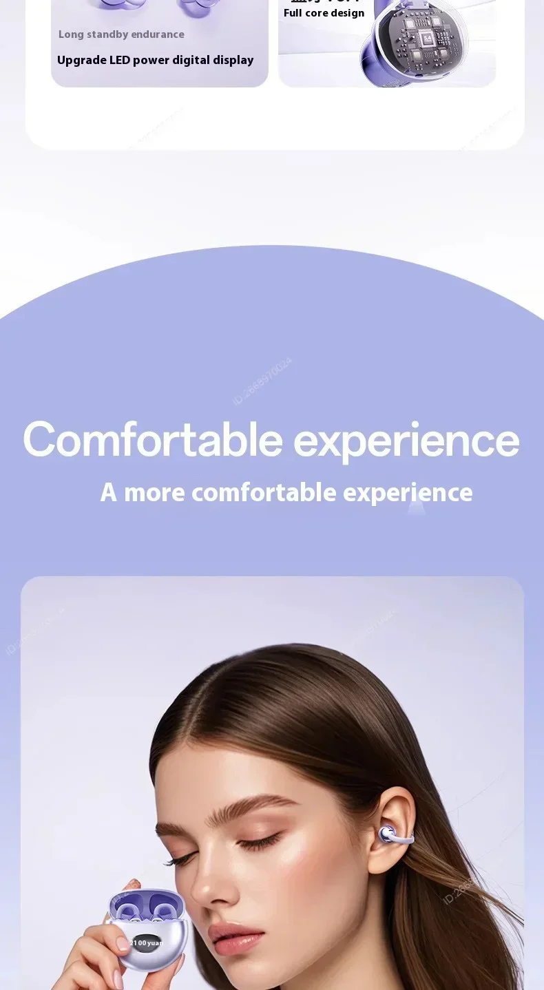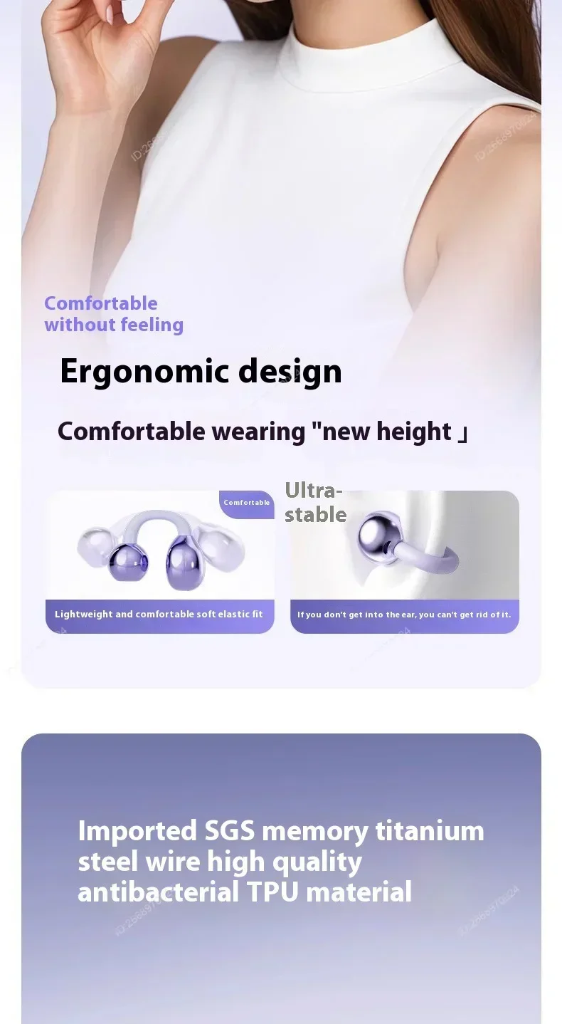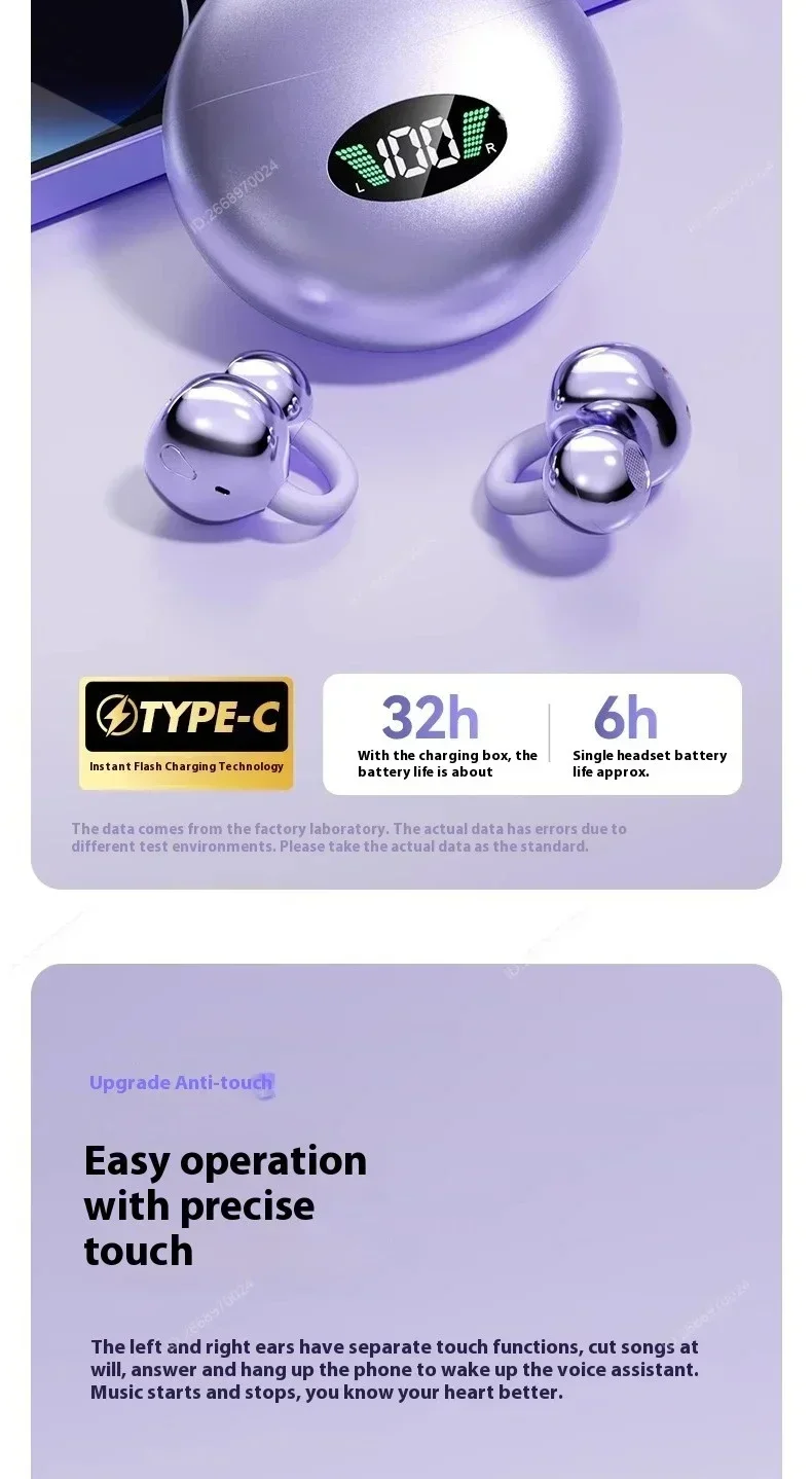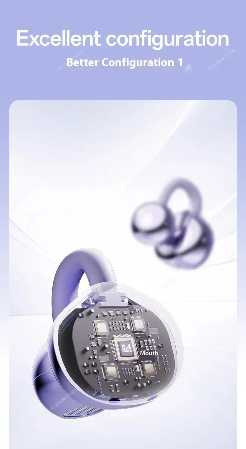 Enjoy comfortable and secure listening with these wireless clip-on Bluetooth earbuds designed for active and everyday use. Featuring HiFi stereo sound, active noise cancellation, and a built-in microphone, they deliver clear audio for music and calls. The sweatproof design and long battery life make them ideal for sports, outdoor activities, and daily wear.
